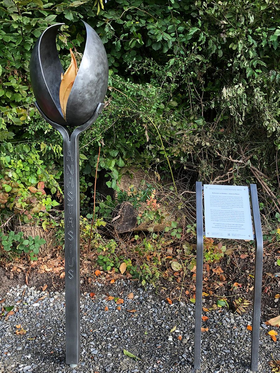 Mit dem Anastasius-Hartmann-Weg halten wir das Andenken an den grossen Bischof aus Altwis aufrecht. Auf dem Rundweg von Altwis über den Vorderwald nach Hitzkirch und zurück zur Kapelle treffen wir auf sieben Stelen, die aus dem Leben und Wirken von Anastasius erzählen. Alle Stelen wurden von Alois Eberli, Kunstschmied aus Altwis, gestaltet und angefertigt. Die erste Stele durften wir im April 2016 bei der Kapelle Altwis einweihen und damit den markanten Anfangspunkt des Gedenkwegs setzen. Am 18. Oktober 2020 wurde der Anastasius-Hartmann-Weg eingeweiht und am 6. November 2021 fand der erste offizielle Umgang statt.
